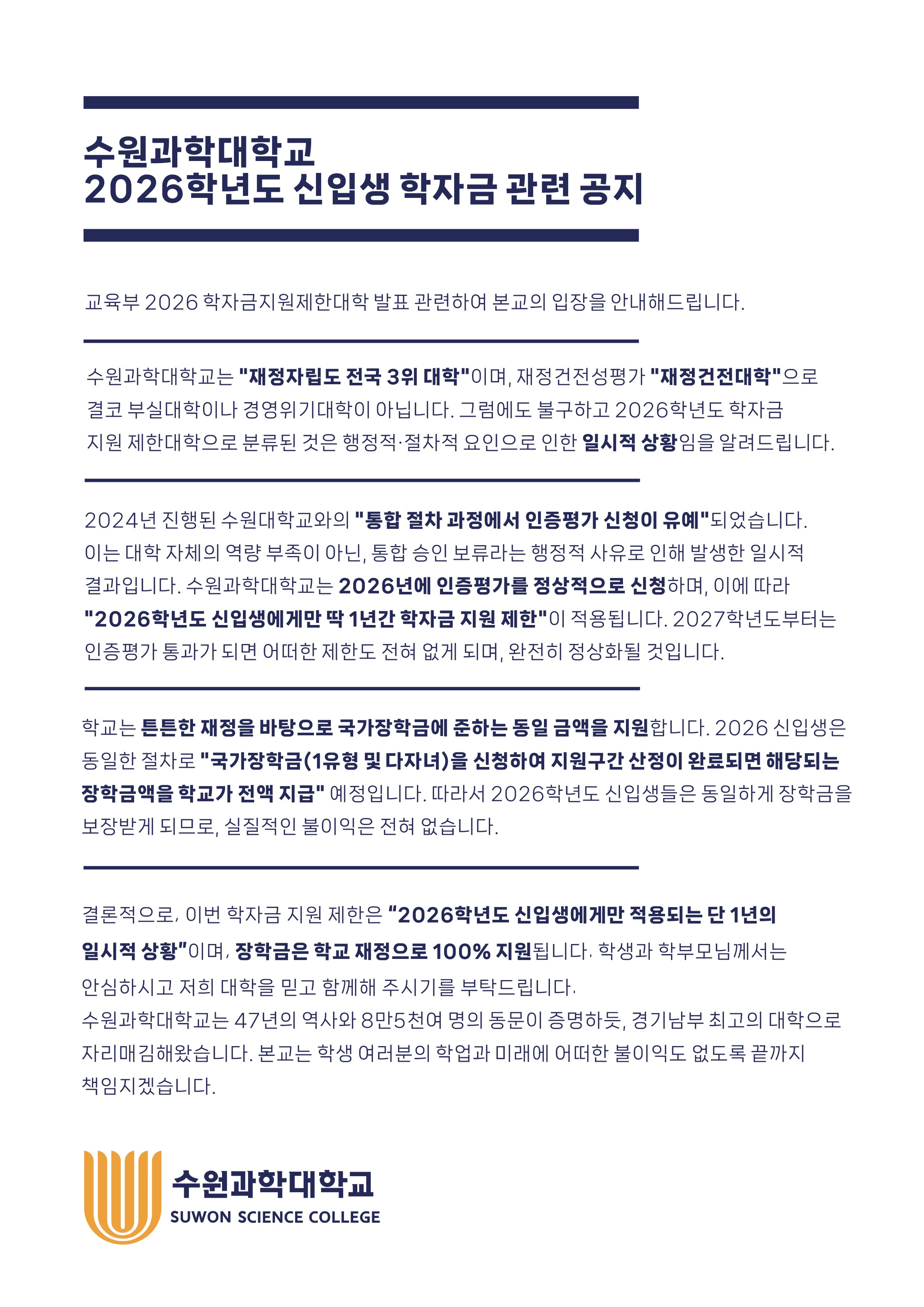수원과학대학교 입시 관련 공지를 확인하실 수 있습니다.